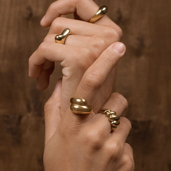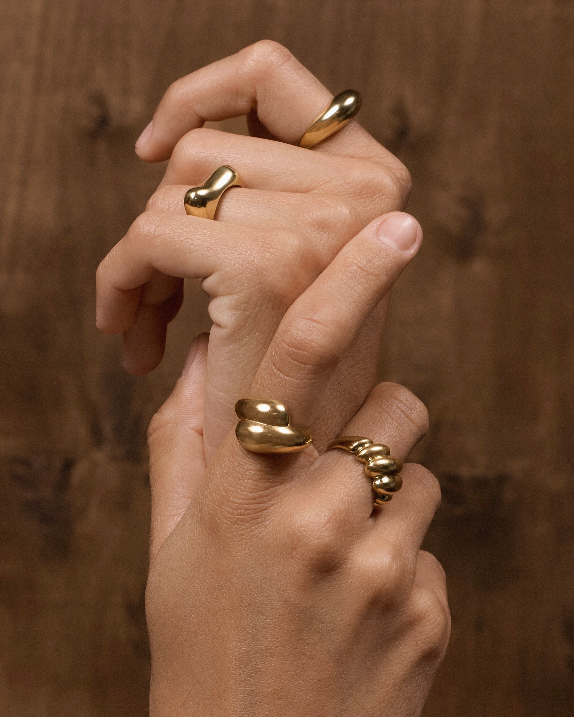 Подвійне дуте колечко відзначається своєю легкістю та гладкістю форм. Його унікальна форма створює ефектний об'єм без зайвої ваги, ідеально підкреслюючи сучасний стиль. Колечко гармонійно вписується в будь-який образ, додаючи елемент мінімалістичної витонченості.