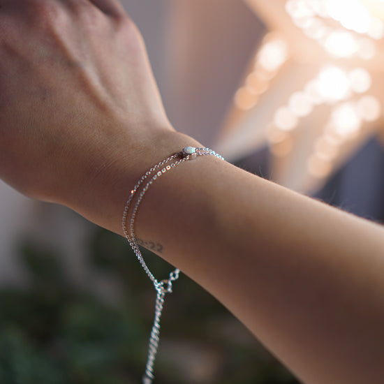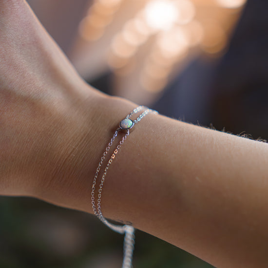 Прикраси з опалами - колекція, яка зачарує кожного! Кожен камінець унікальний і зовсім не подібний на інший. Сяйво опалів на сонці виглядає просто неймовірно завдяки його цікавій грі кольорів. Стане ідеальним подарунком для коханої, мами, сестри, подруги. Довжина браслета легко регулюється.