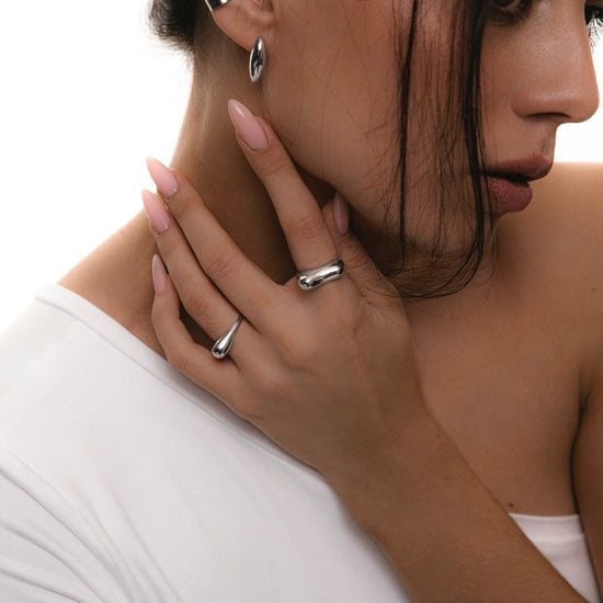 Колечко Капля зі срібла 925ʼ проби з родієм, відображає лаконічну красу завдяки плавному, округлому силуету. Колечко ідеально підійде для тих, хто цінує ненав'язливий стиль і хоче додати акцент до свого щоденного образу.