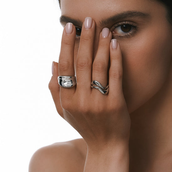 Масивне колечко зі срібла 925ʼ проби з родієм, вирізняється своїм сміливим та чистим дизайном. Завдяки своїй простій, але виразній формі, воно додасть естетичності до будь-якого образу, зберігаючи при цьому елегантність.